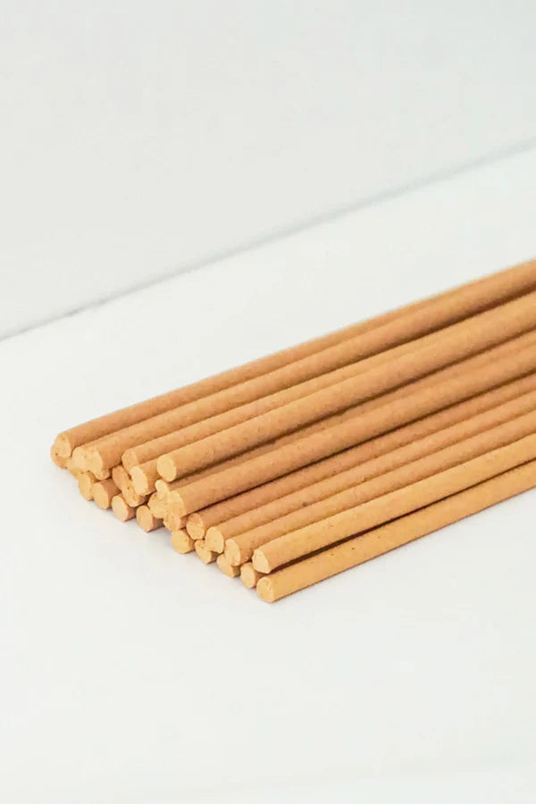 Jedes Stäbchen wird mit viel Sorgfalt von Hand hergestellt und besteht aus natürlichen Inhaltsstoffen, die keine synthetischen Essenzen oder Chemikalien enthalten.