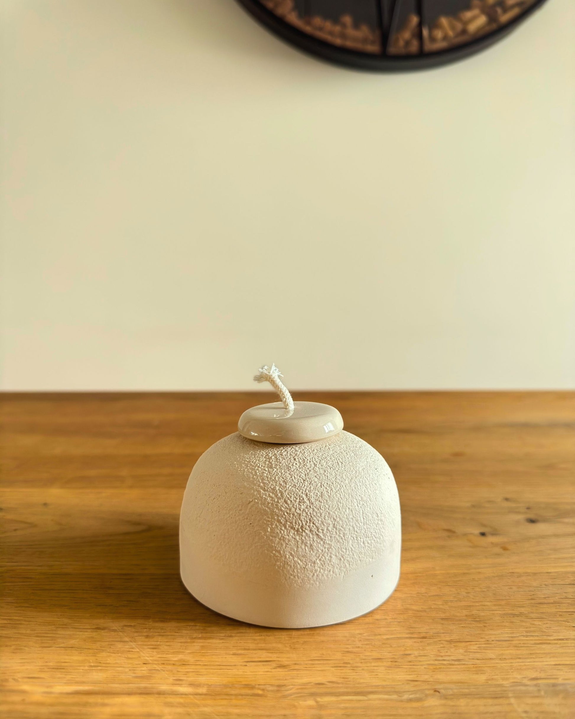 Diese schlicht gestaltete Öllampe verbindet modernes Design mit traditioneller Wärme. Erhältlich in Beige und tiefem Braunschwarz, schafft sie eine ruhige, stimmungsvolle Atmosphäre – ob auf dem Esstisch, dem Balkon oder als dezentes Lichtobjekt im Wohnzimmer. Die matte Oberfläche und die klare Silhouette machen sie zu einem stilvollen Begleiter für entspannte Abende und besondere Momente.